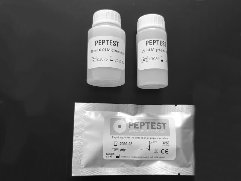 En cas de suspicion, la pepsine peut être détectée avec le Peptest™ dans les expectorations du patient. Le prélèvement des échantillons est simple. Les échantillons sont préparés facilement avec des moyens disponibles en standard et le résultat est disponible extrêmement rapidement.